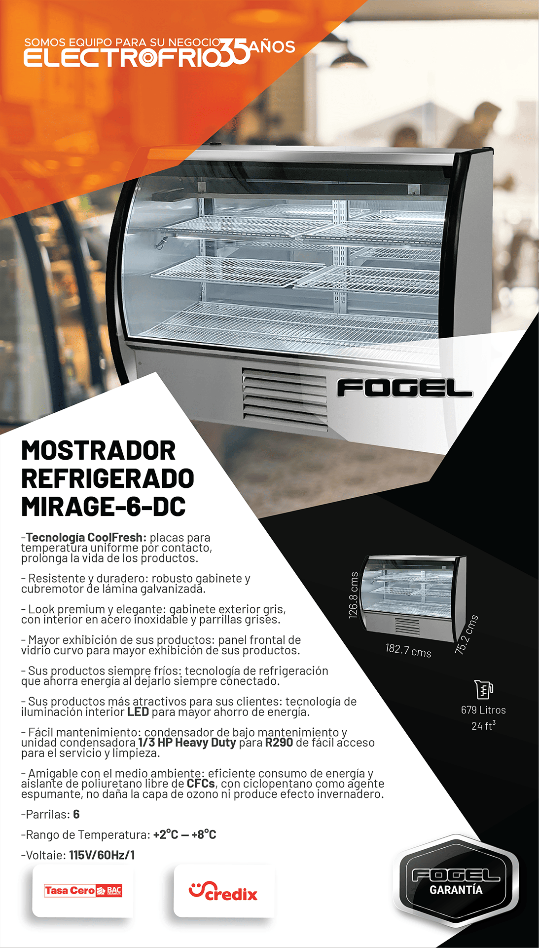 | Rango de temperatura | 2°C a 8°C / 32°F a 46°F |