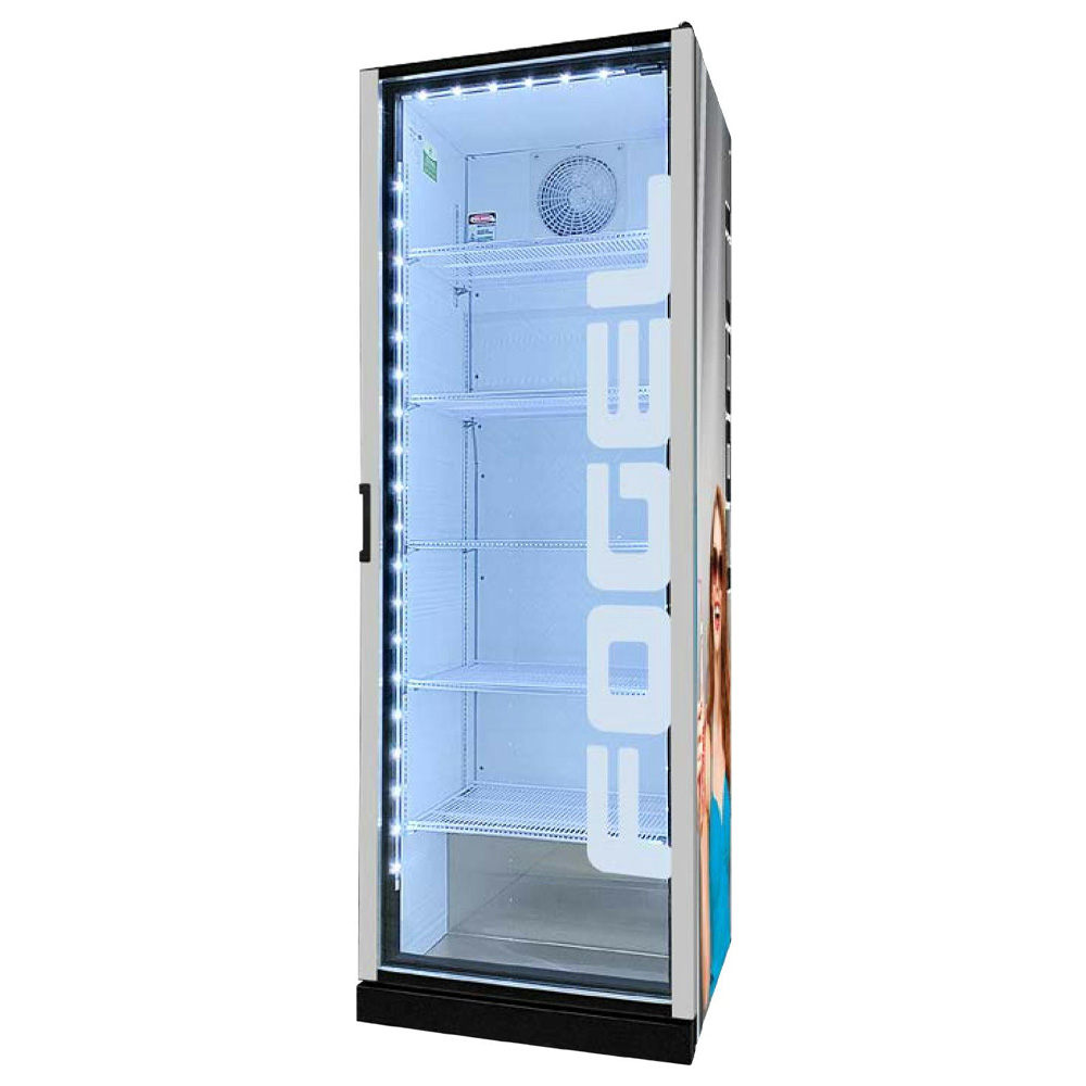 • Refrigerador de gran capacidad, de una puerta de vidrio piso-techo.