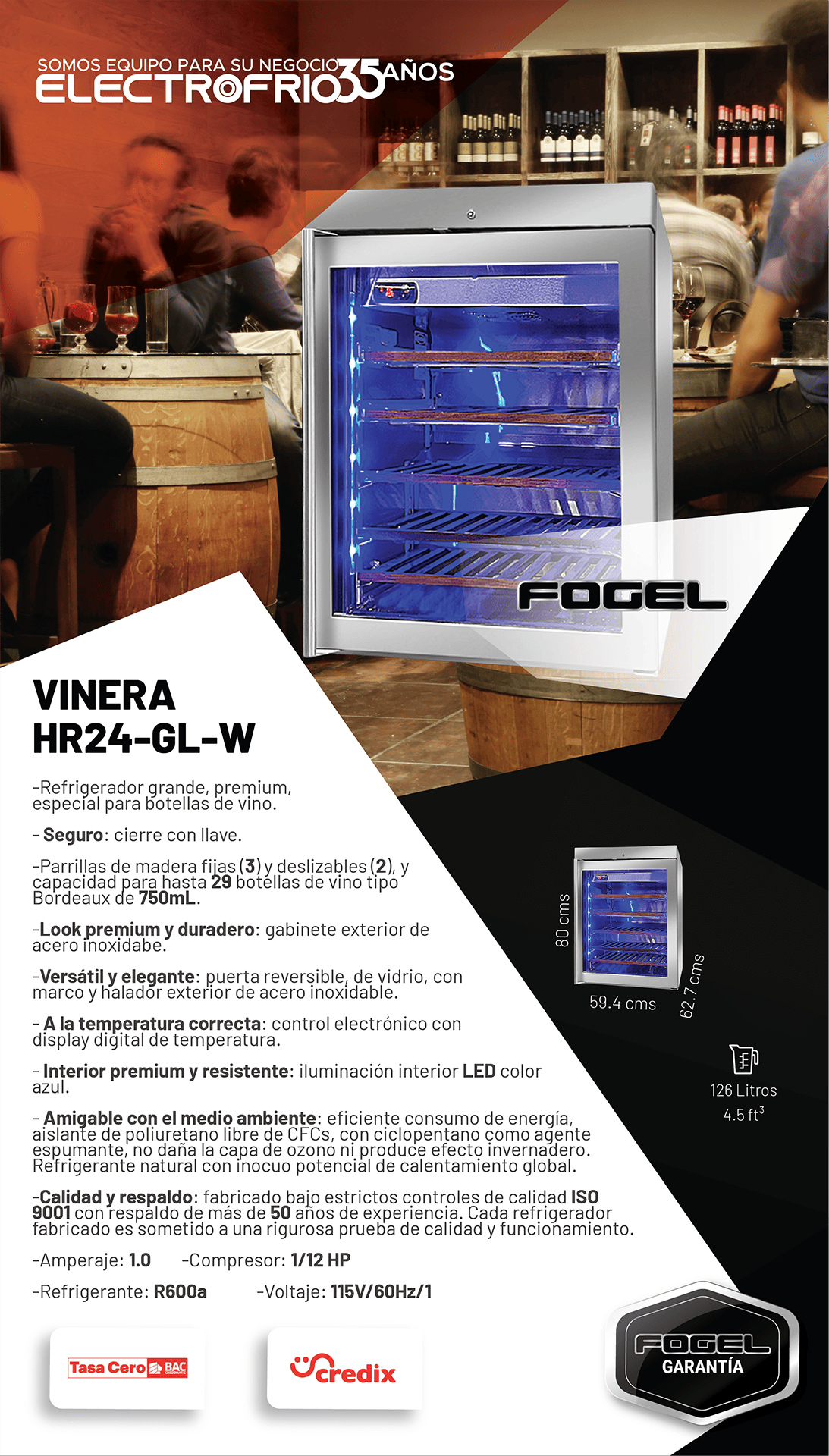 Capacidad | 29 Botellas tipo Bordeaux de 750mL. |